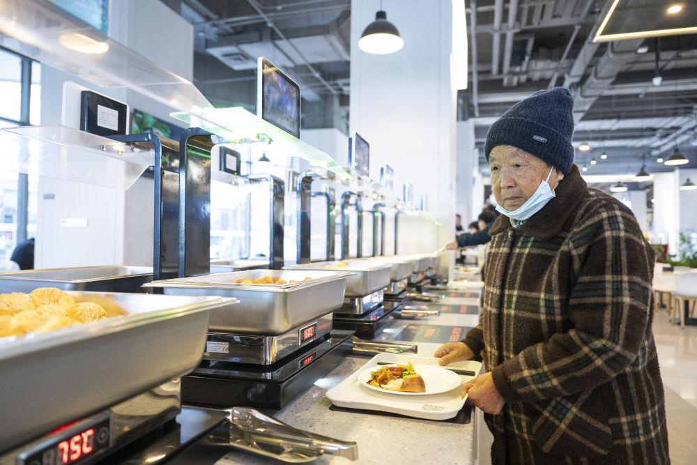 2025年11月25日,老人在雄安新區(qū)啟動區(qū)文華社區(qū)華序府智慧食堂內(nèi)取餐。在這座食堂,居民“刷臉”即可完成身份識別,取餐時系統(tǒng)自動綁定餐盤并實時結(jié)算,實現(xiàn)無感支付。此外,取餐區(qū)具備智能稱重與熱量測算功能、健康一體機(jī)可以生成健康報告并提供飲食建議。