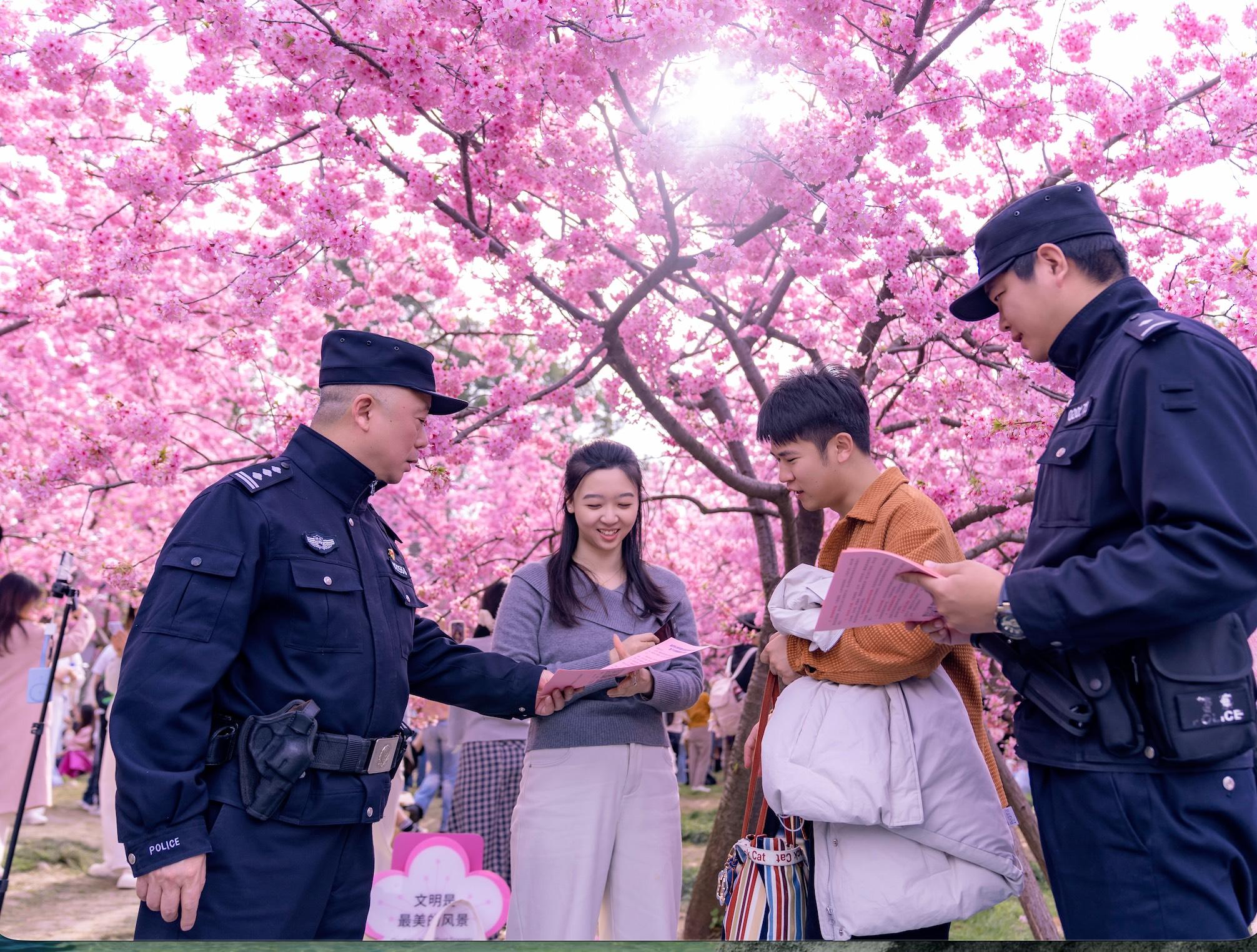 最美人間四月天,湖北武漢東湖風(fēng)景區(qū)繁花似錦,游人如織。武漢市公安局東湖風(fēng)景區(qū)分局將警務(wù)工作陣地前移、服務(wù)前置,全力守護賞花季平安。