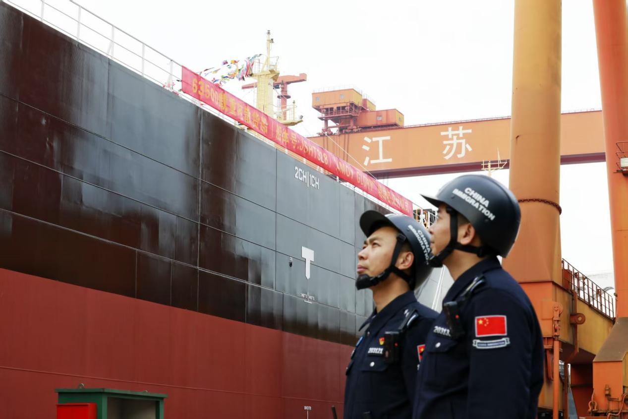 “針對(duì)新造船出口產(chǎn)業(yè)發(fā)展需求,我們量身定制了查驗(yàn)監(jiān)管和通關(guān)保障方案,提供‘一對(duì)一’的全流程服務(wù),精準(zhǔn)掌握船舶動(dòng)態(tài)和手續(xù)辦理進(jìn)度,盡可能為企業(yè)節(jié)省時(shí)間,確保新造船能夠如期、順利交付啟航?!眻?zhí)勤一隊(duì)民警徐子超說(shuō)。