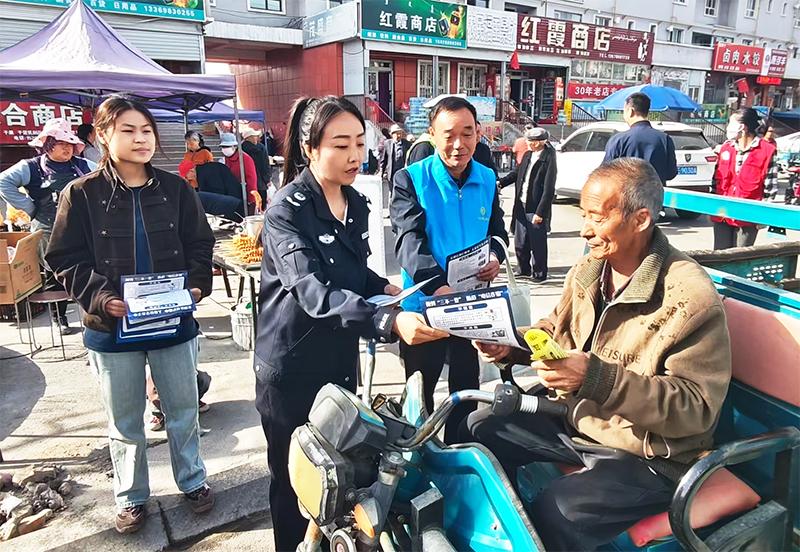 春季農(nóng)忙時(shí)節(jié),群眾農(nóng)事作業(yè)與出行需求激增,道路交通安全風(fēng)險(xiǎn)隱患隨之上升。為從源頭預(yù)防和減少道路交通事故,以法治力量守護(hù)群眾春耕生產(chǎn)和出行安全,4月7日,新疆生產(chǎn)建設(shè)兵團(tuán)第五師八十四團(tuán)司法所聯(lián)合博樂(lè)墾區(qū)公安局交警大隊(duì)、八十四團(tuán)平安法治建設(shè)辦公室等部門,以趕集日為契機(jī),走進(jìn)集市開展《中華人民共和國(guó)道路交通安全法》宣傳活動(dòng),將行車安全知識(shí)與交通法律法規(guī)送到群眾身邊,為構(gòu)建良好的交通環(huán)境注入法治力量。