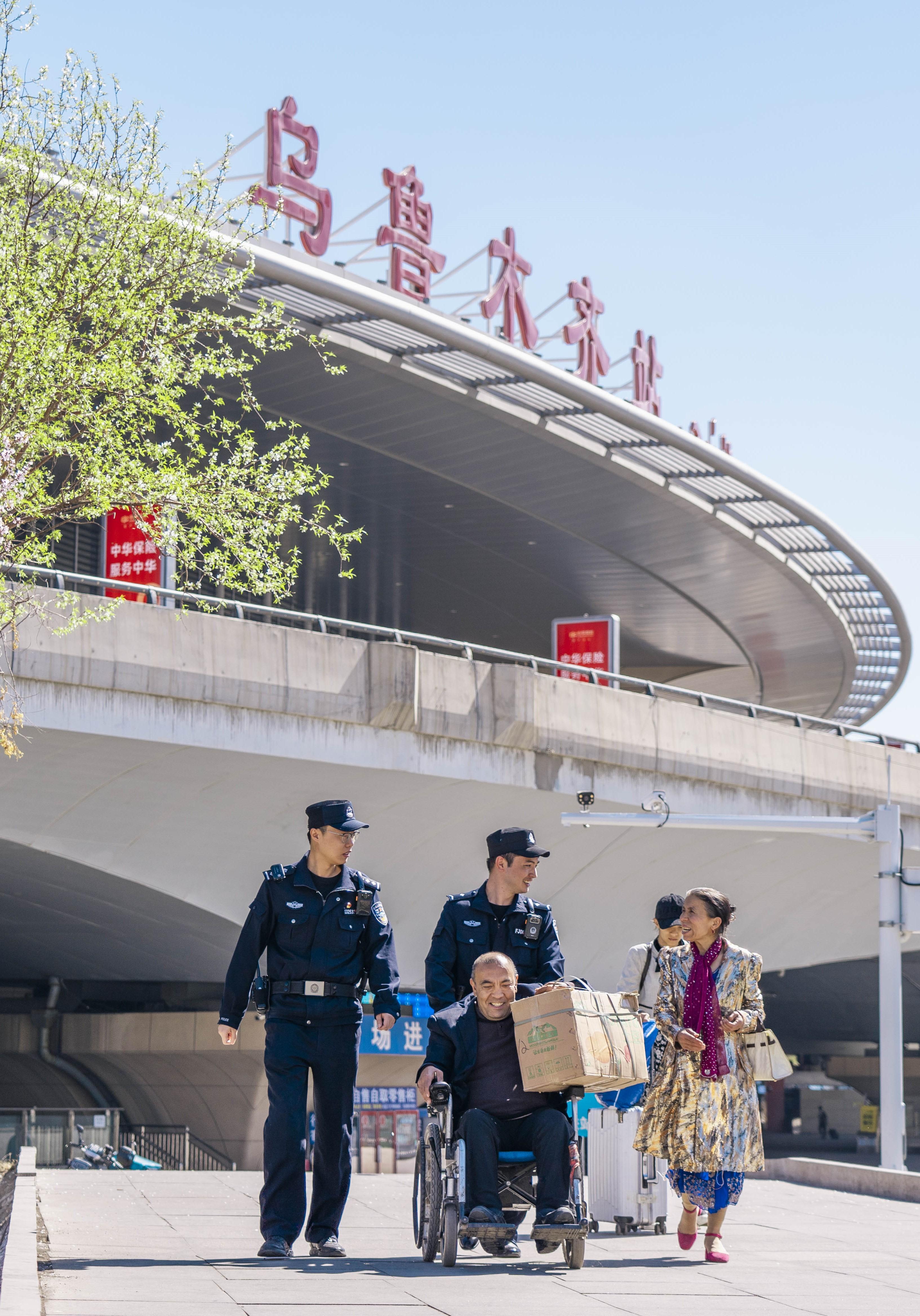 4月8日,春日暖陽下烏魯木齊站站前繁花初綻。烏魯木齊鐵路公安處烏魯木齊站派出所執(zhí)勤民警主動(dòng)幫扶行動(dòng)不便的旅客,推輪椅、指引路線,用貼心服務(wù)溫暖出行路,讓春日旅途更安心。
