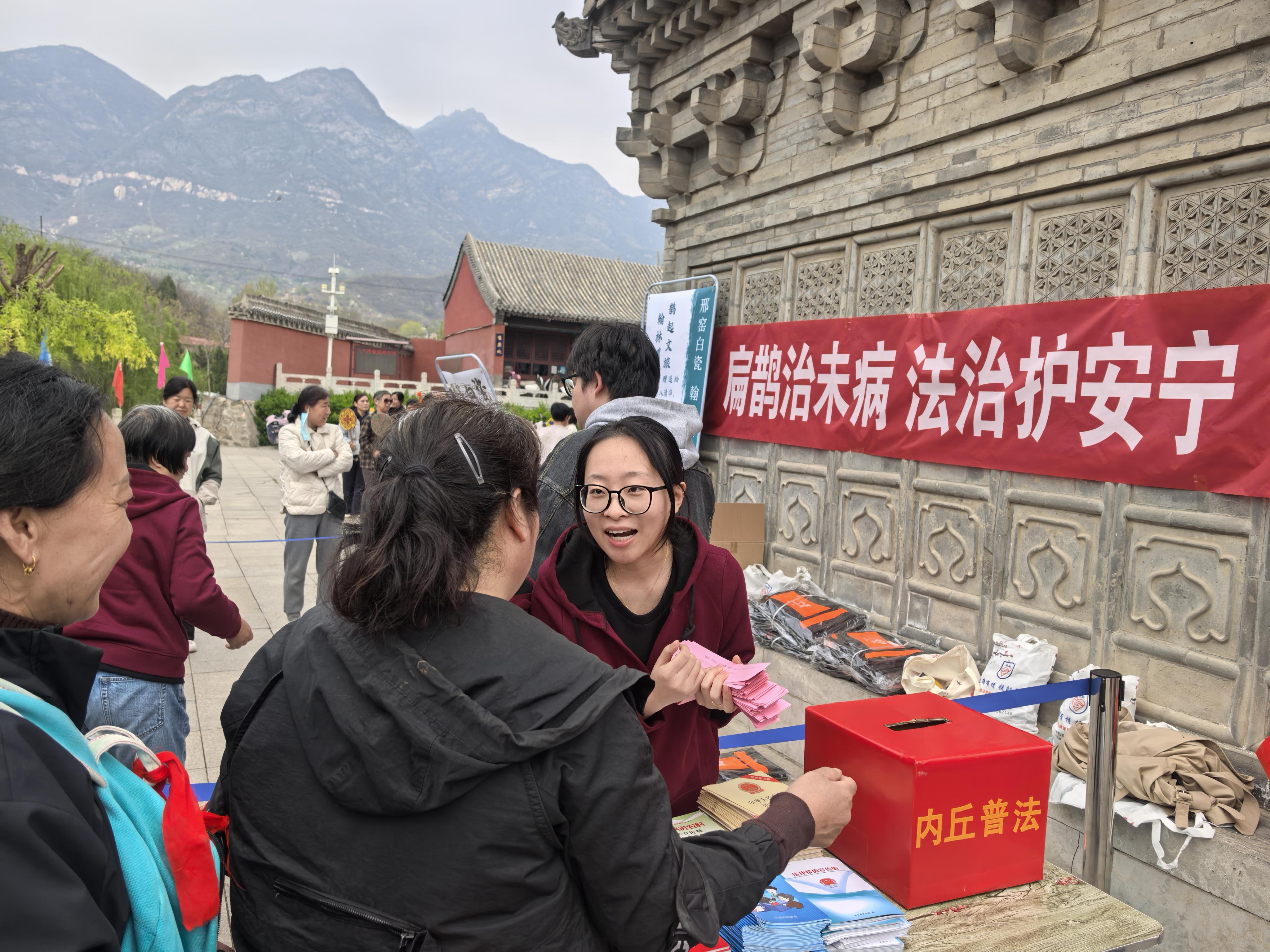 4月8日,河北省邢臺市內丘縣扁鵲廟會上人聲鼎沸,一句句“法律小問答”清脆響起,吸引眾多游客紛紛駐足參與其中。