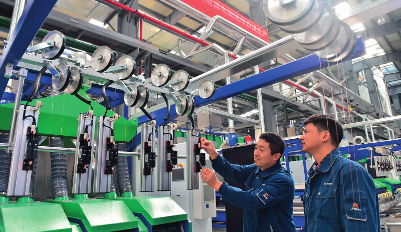 在江西江銅華東電工新材料科技有限公司生產(chǎn)車間,技術工人在生產(chǎn)線上巡檢設備(資料照片)。張善臣攝/本刊