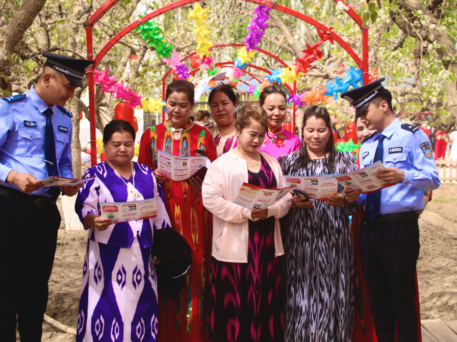 4月10日,新疆新和縣塔木托格拉克鄉(xiāng)梨花文化旅游節(jié)如期而至。梨花競(jìng)相綻放,如云似雪,吸引了大批游客和周邊群眾前來賞花踏青。新和縣公安局塔木托格拉克鄉(xiāng)派出所的民輔警穿梭在梨園與人群中,開展流動(dòng)的國家安全教育活動(dòng),讓法治春風(fēng)吹進(jìn)游客心坎里。