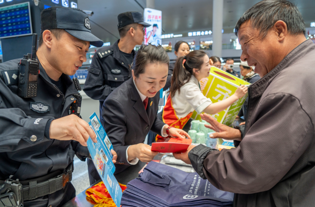在第十一個(gè)全民國(guó)家安全教育日來(lái)臨之際,4月14日,烏魯木齊鐵路公安處烏魯木齊站派出所聯(lián)合烏魯木齊經(jīng)濟(jì)技術(shù)開發(fā)區(qū)(頭屯河區(qū))司法局高鐵司法所、鐵路運(yùn)輸檢察院,在烏魯木齊站候車室開展鐵路安全普法教育活動(dòng)?;顒?dòng)現(xiàn)場(chǎng),普法志愿者通過(guò)普法宣講、典型案例警示、安全知識(shí)有獎(jiǎng)問(wèn)答、宣傳資料發(fā)放、現(xiàn)場(chǎng)法律咨詢等多種形式,向群眾普及國(guó)家安全、鐵路護(hù)路、出行安全等法律法規(guī)知識(shí),有效提升群眾法治意識(shí)與安全防護(hù)能力,營(yíng)造“國(guó)家安全、人人有責(zé)”的濃厚氛圍。