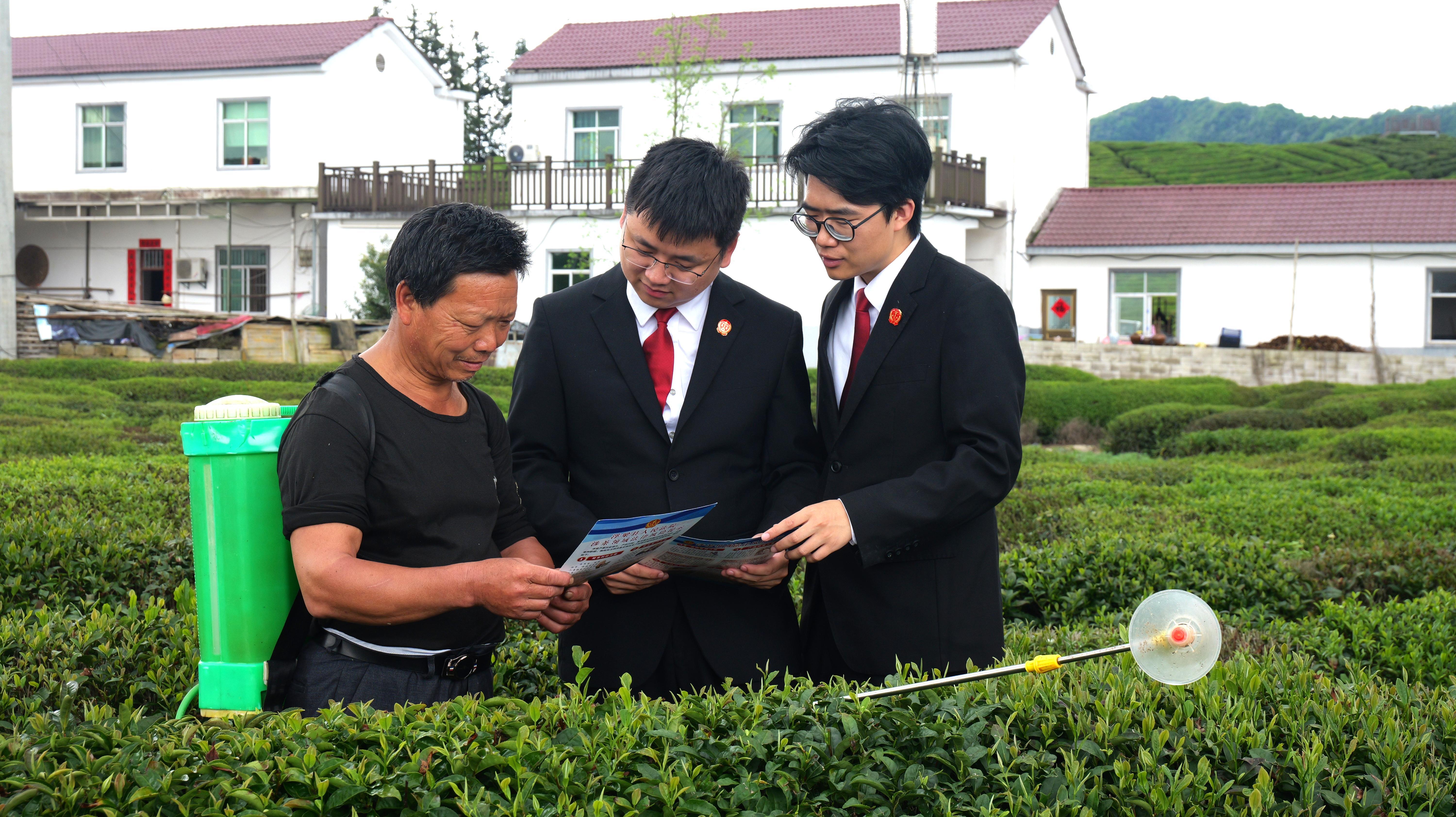 圖為4月14日,法官向茶農提示涉茶領域法律風險。