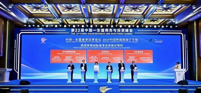 第22屆中國—東盟商務(wù)與投資峰會9月17日—21日在廣西南寧召開,期間中國—東盟商事法律論壇在南寧舉辦?;顒又校腥A人民共和國二級大法官、廣西壯族自治區(qū)高級人民法院院長黃海龍,中國國際貿(mào)易促進(jìn)委員會副會長李慶霜等嘉賓見證系列合作成果的達(dá)成。