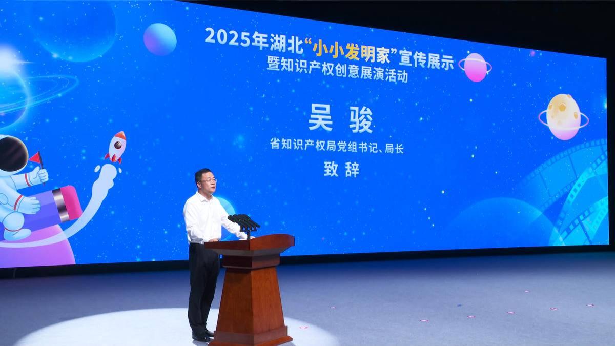 活動在武漢市光谷第二十一小學(xué)樂隊(duì)和機(jī)器人共同帶來的開場秀《閃耀明天》中拉開帷幕。湖北省知識產(chǎn)權(quán)局局長吳駿致辭表示,此次活動旨在為全省熱愛科學(xué)、勇于創(chuàng)新的青少年們搭建一個激發(fā)靈感、展示才華、交流互鑒的廣闊平臺,讓創(chuàng)新的種子在幼小的心靈中生根發(fā)芽,讓知識產(chǎn)權(quán)的理念在青春的土壤里茁壯成長。他親切寄語“小小發(fā)明家”,永葆好奇之心,敢于提問,善于思考,勤于動手,將天馬行空的想象變成創(chuàng)新創(chuàng)造的作品;初識知識產(chǎn)權(quán),了解它、尊重它、運(yùn)用它,學(xué)會保護(hù)創(chuàng)意,尊重發(fā)明創(chuàng)造;同時志存高遠(yuǎn),將今天的興趣發(fā)展成為明天的志向,努力成長為科技自立自強(qiáng)的棟梁之材。