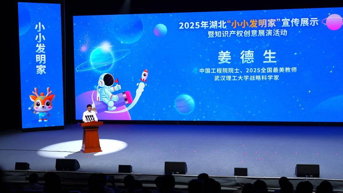 “小手拉大手,創(chuàng)新一起走?!?月23日下午,為大力激發(fā)廣大青少年尊重知識、崇尚創(chuàng)新意識,構(gòu)建覆蓋全省中小學(xué)生的科技創(chuàng)新活動平臺,由湖北省知識產(chǎn)權(quán)局主辦、湖北省發(fā)明協(xié)會與極目新聞承辦的2025年湖北“小小發(fā)明家”宣傳展示暨知識產(chǎn)權(quán)創(chuàng)意展演活動在東湖之濱圓滿舉行。中國工程院院士、2025年全國最美教師、武漢理工大學(xué)戰(zhàn)略科學(xué)家姜德生教授出席活動并為青少年開講。