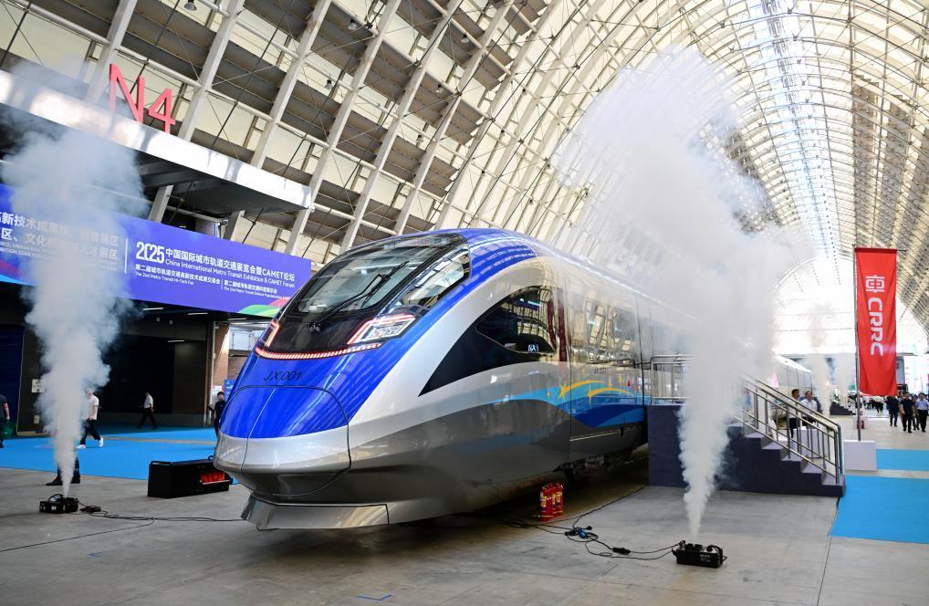 2025年9月18日,由中國中車自主研制且擁有完全自主知識產(chǎn)權(quán)的首列中國標(biāo)準智能市域列車暨京雄快線列車在青島亮相。新華社記者 李紫恒 攝