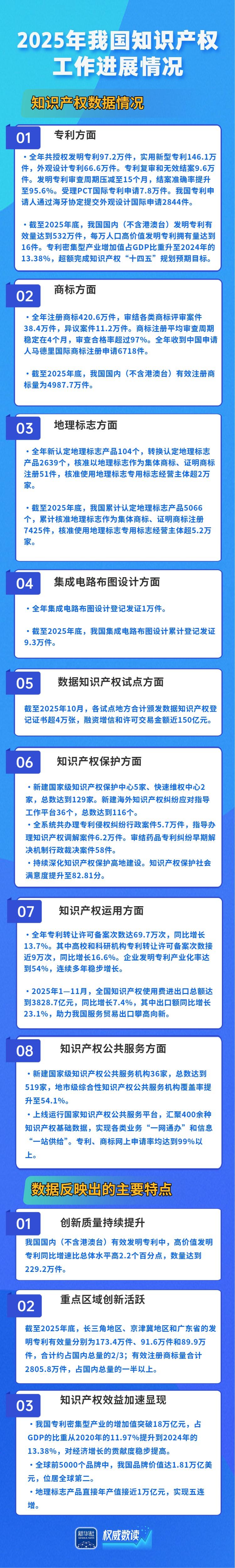 發(fā)明專利有效量達532萬件,人工智能專利有效量居全球前列,地理標志產品直接年產值實現五連增……在23日國新辦新聞發(fā)布會上,國家知識產權局介紹2025年我國知識產權工作進展情況。跟隨海報,一起來看看吧。