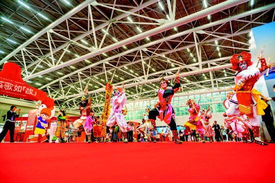 圖為2025年12月21日,雙望鳳悅英歌隊(duì)在廣州文化交易會(huì)現(xiàn)場(chǎng)演出。 受訪者供圖