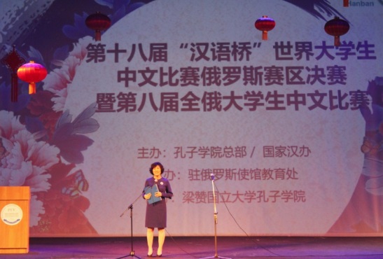 賽前,梁贊國立大學常務副校長謝·弗·杰米多夫、中華人民共和國駐俄羅斯聯(lián)邦大使館教育處一秘姜明、梁贊州教育與青年政策廳廳長奧·謝·謝金丁娜分別致辭。杰米多夫表示,能夠承辦全俄大學生中文比賽是梁贊國立大學的榮幸,同時也是對該校漢語教學工作和孔子學院建設的認可,該校將繼續(xù)支持漢語教學的發(fā)展。姜明對進入決賽的各位選手表示祝賀,希望他們踐行“天下一家”的比賽主題,以賽會友,在未來的學習中繼續(xù)提高自身漢語水平,為中俄兩國人文交流及各領域合作做出貢獻。謝金丁娜歡迎來自七個賽區(qū)的選手來到歷史悠久、人杰地靈的梁贊州,希望中俄兩國青年以語言學習為基礎,加深對彼此國家歷史、文化的了解。