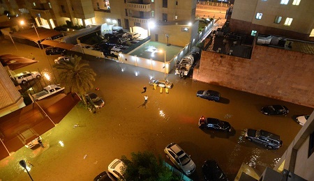 科威特一些地區(qū)28日傍晚遭遇強(qiáng)降雨天氣。
