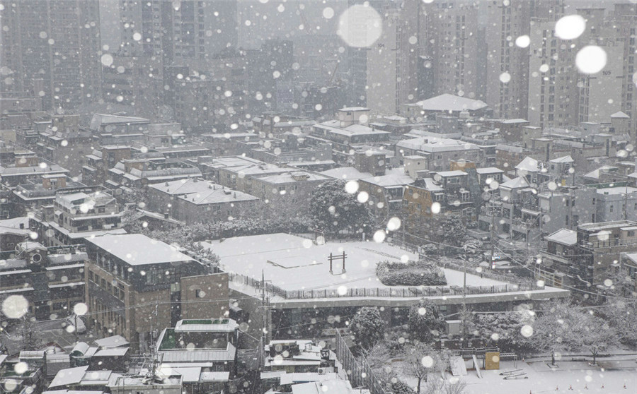 人民網(wǎng)訊 當(dāng)?shù)貢r(shí)間12月13日,韓國(guó)首爾,當(dāng)?shù)亟迪麓笱?,全城白茫茫?/span>