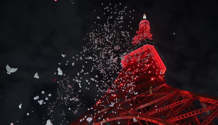 這是2020年1月24日在日本東京拍攝的亮起“中國(guó)紅”的東京塔。當(dāng)日,日本東京地標(biāo)建筑東京塔為慶祝中國(guó)農(nóng)歷新年,亮起特別的“中國(guó)紅”。