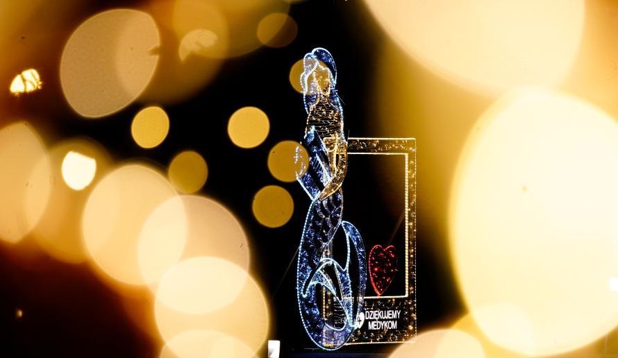 12月16日,波蘭華沙點亮彩燈,向抗擊新冠疫情的醫(yī)務人員表示感謝。這處彩燈左側的美人魚為華沙的象征,右側有“感謝醫(yī)務人員”的字樣。