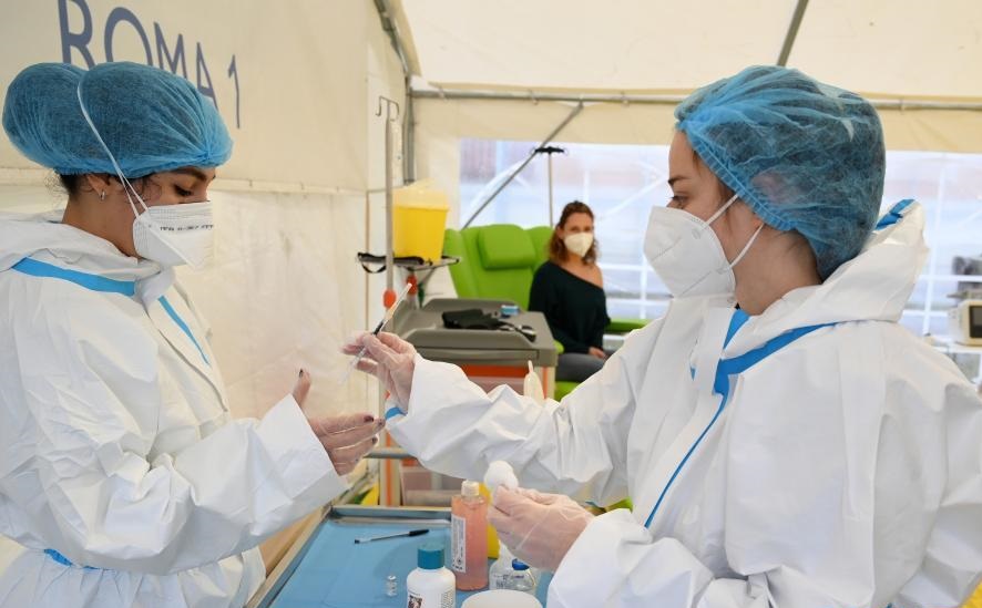 12月28日,在意大利羅馬一家醫(yī)院,醫(yī)護人員準備進行新冠疫苗接種。歐盟多個成員國27日正式啟動新冠疫苗接種工作。首批接種的疫苗由美國輝瑞制藥有限公司與德國生物新技術(shù)公司聯(lián)合研發(fā)。新華社發(fā)(阿爾貝托·林格利亞攝)