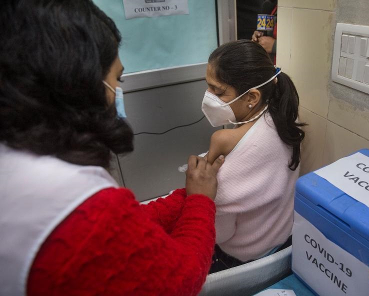 1月6日,在印度新德里的一個疫苗接種點,醫(yī)護(hù)人員和志愿者參加疫苗接種演練。