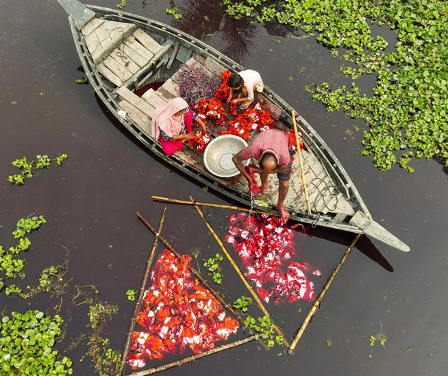 人民網(wǎng)訊 當(dāng)?shù)貢r(shí)間2021年1月10日,孟加拉國(guó)Araihazar,實(shí)拍印染廠織布晾曬過程。