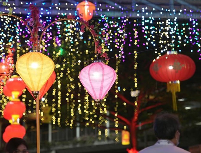 1月18日,慶祝農(nóng)歷新年的燈飾在新加坡紅山組屋區(qū)亮起。 新華社發(fā) (鄧智煒 攝)