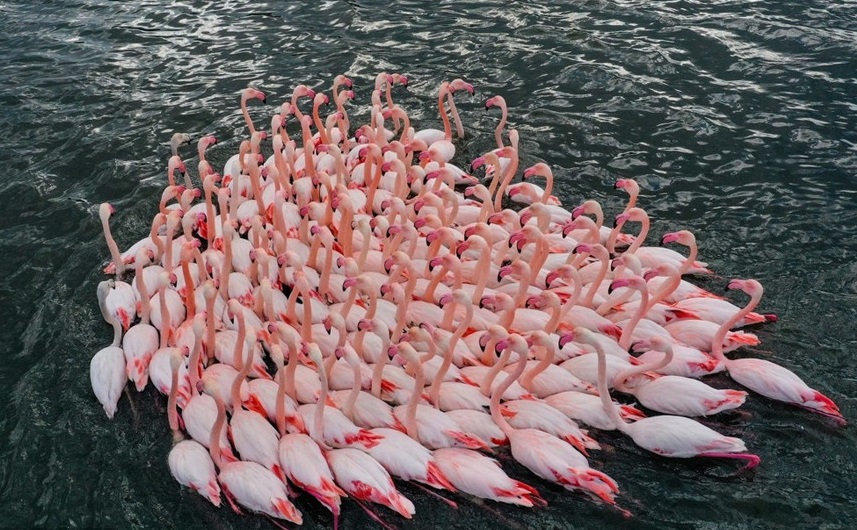 人民網(wǎng)訊 當(dāng)?shù)貢r(shí)間1月18日,土耳其伊茲密爾,成群結(jié)隊(duì)的火烈鳥(niǎo)在水中暢游。