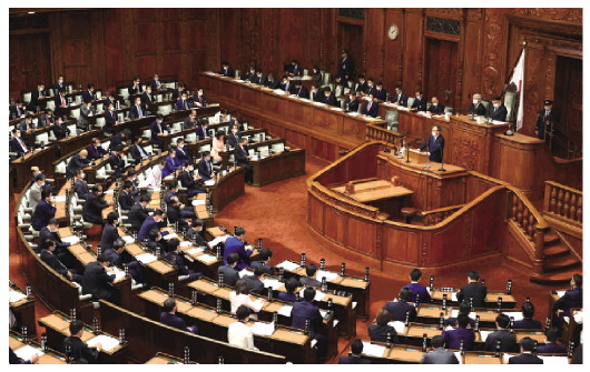 當(dāng)?shù)貢r間1月18日,日本東京,日本第204屆例行國會開幕。日本首相菅義偉發(fā)表施政演說。 CFP供圖