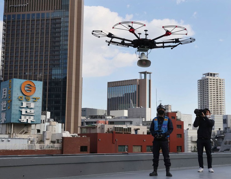 日本神戶出動(dòng)無(wú)人機(jī) 提醒市民非必要不出行
