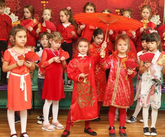 2月15日,學(xué)生在烏克蘭基輔第一東方語言學(xué)校參加慶祝春節(jié)活動。