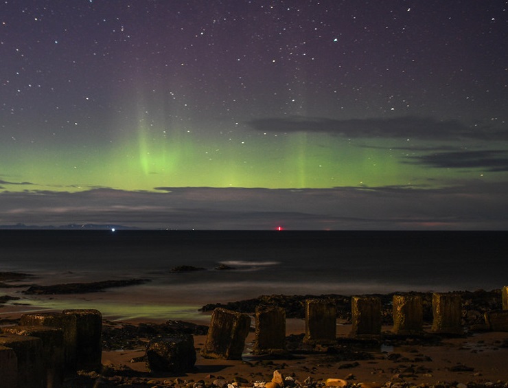 人民網(wǎng)訊 當(dāng)?shù)貢r(shí)間2月20日,英國蘇格蘭洛西茅斯極光絢爛,星光璀璨。