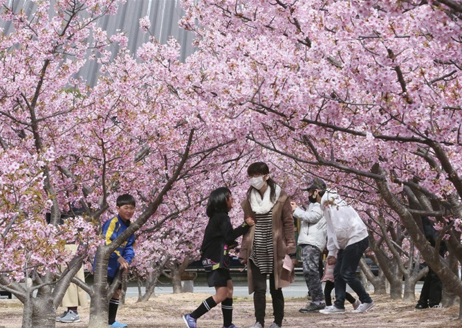 人民網(wǎng)訊 當?shù)貢r間2月27日,日本山口縣,當?shù)貦鸦ㄊ㈤_,美如畫卷。