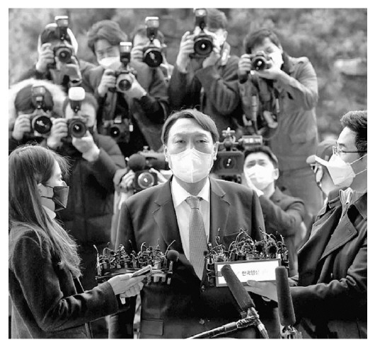 韓國(guó)檢察總長(zhǎng)尹錫悅(圖中)3月4日向總統(tǒng)文在寅遞交辭呈。 (資料圖片)