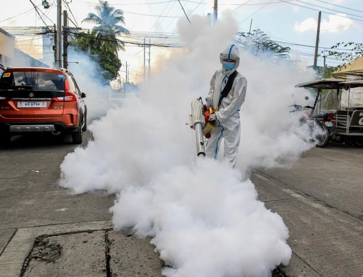 3月17日,工作人員在菲律賓馬尼拉街頭進行消殺作業(yè)。