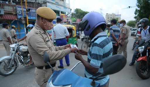 5月19日,警方人員在印度阿加爾塔拉街頭查看路人證件。新華社發(fā)