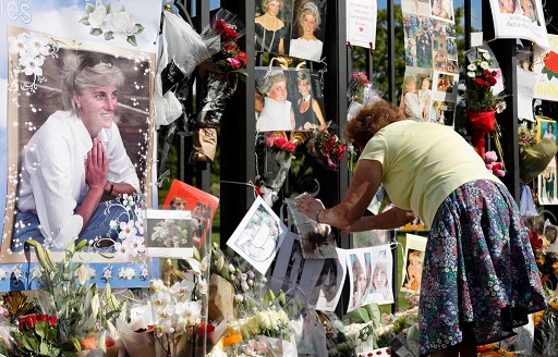 這是2017年8月31日一名女子在英國倫敦肯辛頓宮門前擺放紀(jì)念卡片悼念戴安娜的資料照片。當(dāng)天是英國戴安娜王妃去世20周年紀(jì)念日。
