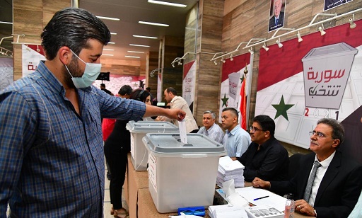 5月26日,選民在敘利亞大馬士革一處投票站投票。
