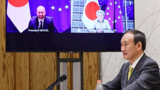 第27屆歐盟-日本峰會27日以線上方式舉行,歐洲理事會主席米歇爾、歐盟委員會主席馮德萊恩和日本首相菅義偉與會。會后發(fā)表的聯(lián)合聲明說,雙方支持今年夏天以“安全和有保障的方式”舉辦東京奧運(yùn)會和殘奧會,這是“全球團(tuán)結(jié)打敗新冠疫情”的一個(gè)象征。