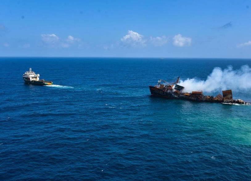 6月2日,斯里蘭卡總統(tǒng)戈塔巴雅下令將起火貨船“X-PRESS PEARL”號(hào)拖向遠(yuǎn)離科倫坡港的深海區(qū),以防引發(fā)更大的環(huán)境災(zāi)難?!癤-PRESS PEARL”號(hào)貨船5月20日抵達(dá)科倫坡港西北約9.5海里錨地時(shí)發(fā)出火警求救信號(hào)。斯里蘭卡海洋環(huán)境保護(hù)局官員5月28日表示,在科倫坡港附近起火燃燒的“X-PRESS PEARL”號(hào)貨船預(yù)計(jì)將會(huì)引發(fā)嚴(yán)重環(huán)境災(zāi)難。新華社發(fā)(斯里蘭卡空軍媒體處供圖)