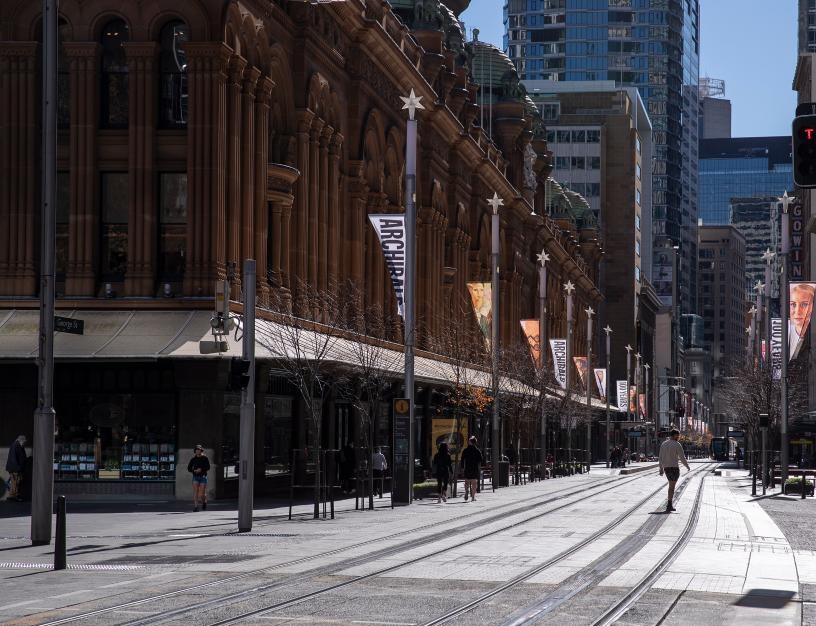 這是6月26日拍攝的澳大利亞悉尼市中心空曠的街道。