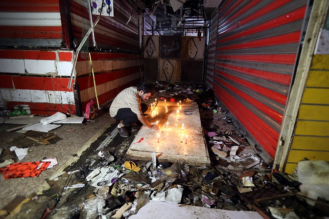 7月19日,在伊拉克首都巴格達(dá)東郊一市場,一名男子點燃蠟燭。