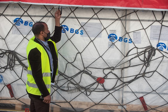 這是10月24日在埃塞俄比亞首都亞的斯亞貝巴拍攝的新一批中國政府援助埃塞的新冠疫苗。