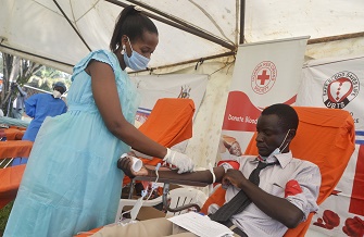 坎帕拉當天舉辦義務獻血活動,以保證新冠疫情期間醫(yī)療機構備用血液充足。