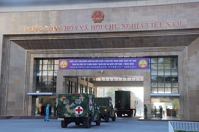 參加中越兩軍“和平救援-2021”衛(wèi)勤聯(lián)合演習的中國軍隊官兵84人于6日上午采取公路機動方式,通過東興口岸跨出國門,抵達越南廣寧省芒街市演習地域。