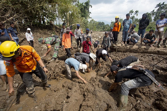 2月27日,印度尼西亞救援人員在西蘇門(mén)答臘省開(kāi)展搜救工作。