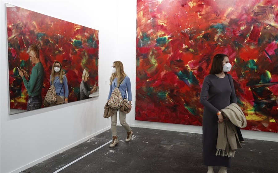 人民網(wǎng)訊 當(dāng)?shù)貢r(shí)間2月27日,西班牙馬德里,2022馬德里當(dāng)代藝術(shù)博覽會(huì)的最后一天,參觀者在欣賞藝術(shù)品。