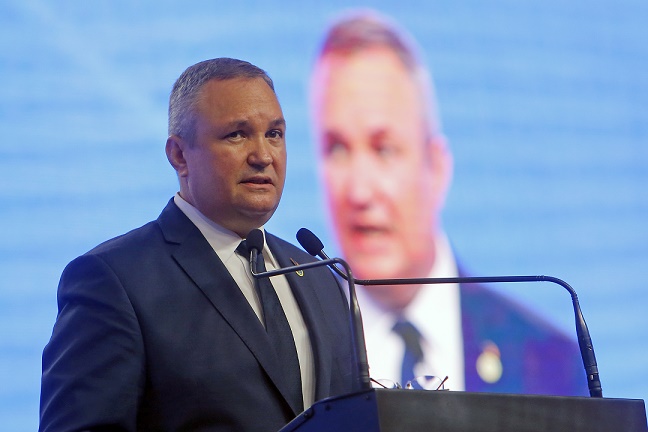 4月10日,在羅馬尼亞首都布加勒斯特,羅馬尼亞總理丘克在國家自由黨特別代表大會上發(fā)表講話。