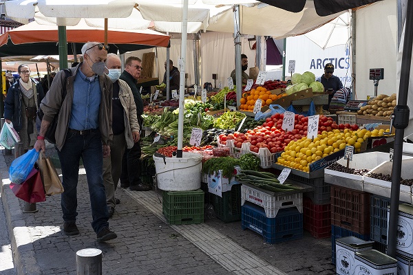 4月20日,顧客在希臘雅典市中心一處露天集市采購。