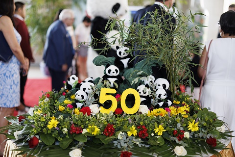 中國駐美國大使館同美國史密森學(xué)會國家動(dòng)物園8月24日晚在華盛頓聯(lián)合舉辦“大熊貓之夜”招待會,慶祝大熊貓抵美50周年暨展映紀(jì)錄片《小奇跡》。