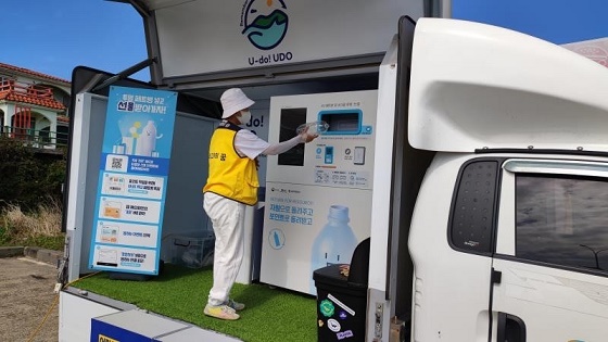 一般游客在進(jìn)入牛島前,可以在碼頭等處掃碼,簽署支持牛島資源循環(huán)運(yùn)動的聲明。游客用完島上餐飲商鋪提供的可重復(fù)使用塑料杯后,可將其放入回收設(shè)備,回收后的杯子經(jīng)過清洗、消毒等流程后將被重復(fù)利用。為鼓勵游客積極參與,回收終端提供積分、現(xiàn)金返還和交通卡充值等形式的獎勵。此外,對于沒有用完的塑料杯,游客可以帶出牛島,在濟(jì)州島主要交通設(shè)施、指定咖啡店等處利用回收設(shè)備進(jìn)行回收。