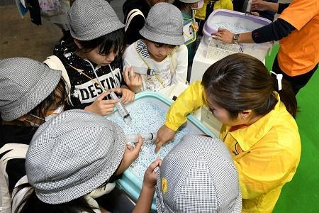 2018年12月6日,在日本東京,小學(xué)生們參觀一種環(huán)保寵物用品。這種利用產(chǎn)業(yè)廢料制成的顆粒狀材料可以吸收寵物尿液并凝聚成團(tuán),方便清理。新華社記者 華義 攝